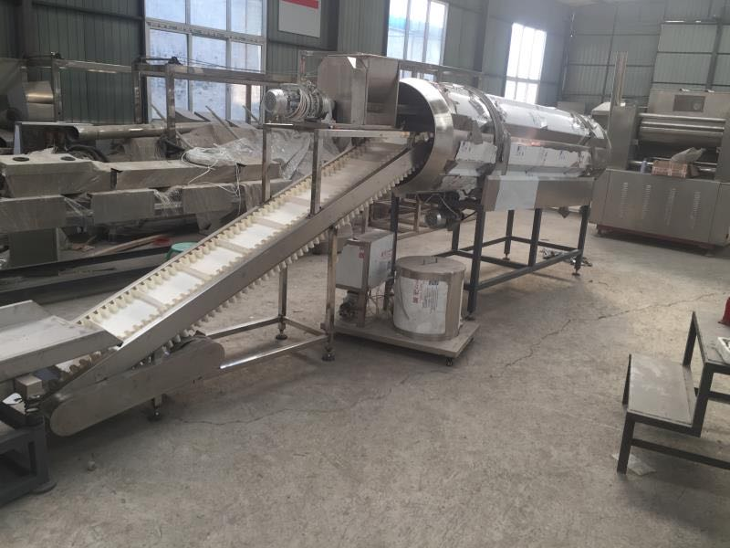 設(shè)備配置:拌粉機(jī)→上料機(jī)→雙螺桿膨化機(jī)→切斷機(jī)→烘干箱→調(diào)味機(jī)→冷卻輸送→(包裝機(jī))